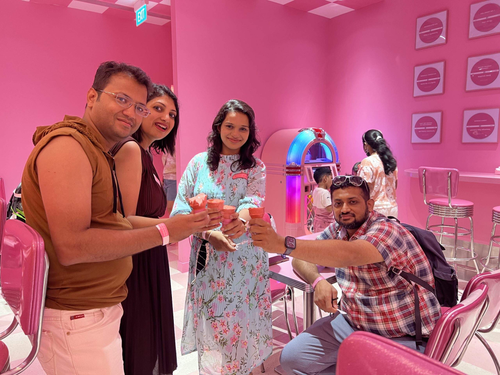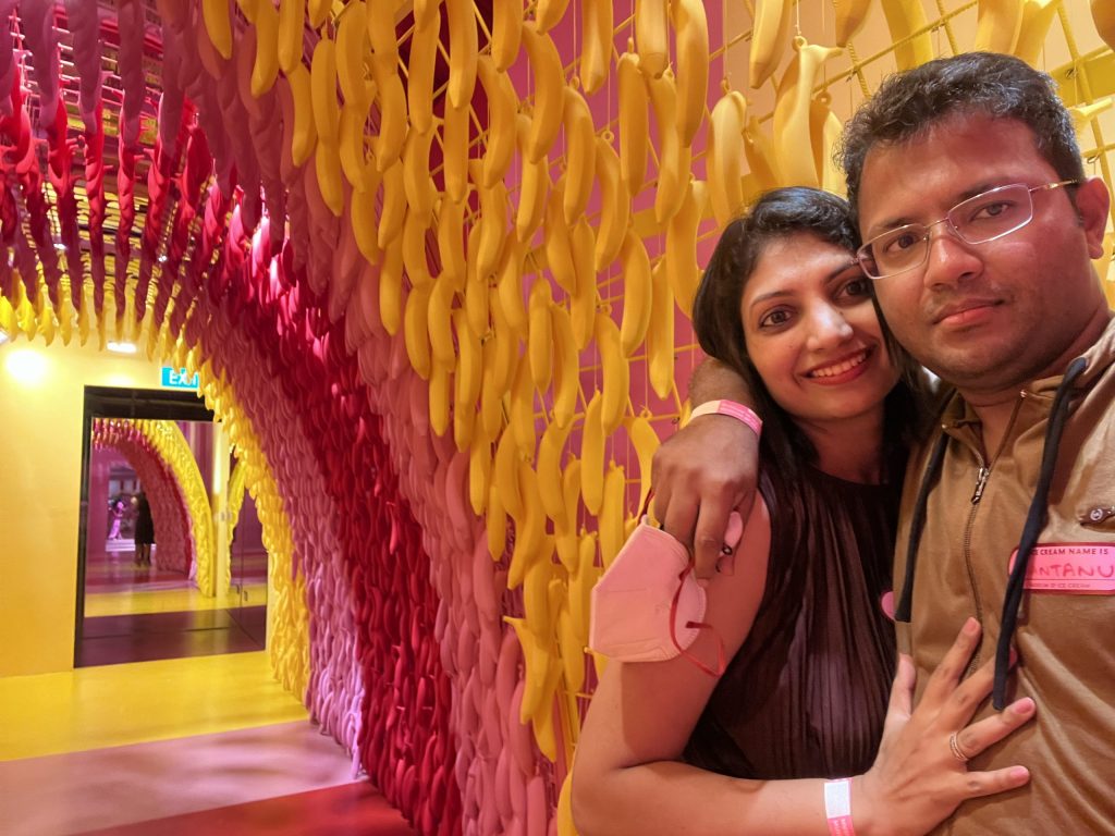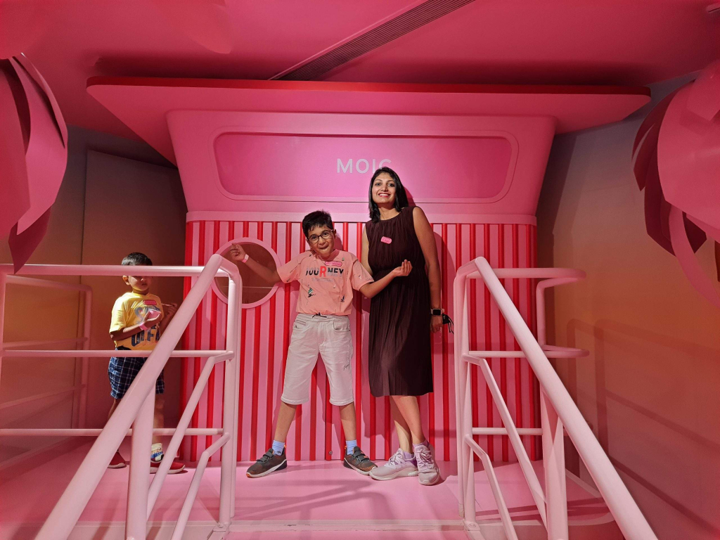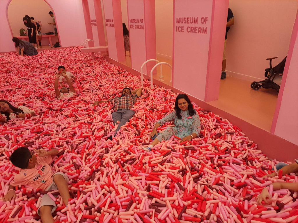 We started our journey with, “The Museum of Ice Cream”. Chocolate ice cream ki Duniya ke Sapne to bahut dekhe hai bachpan se, Aaj unko jee Bhi liya. Unlimited ice cream, a barbie dollhouse-like pink-painted museum, photo-friendly exhibits based around ice cream, an ice cream castle, ice cream tablet games, a squishy pink yellow bananas forest, neon ice cream maze, magnet letters wall, a dragon play area with swings, slides, and basketball, and the best of them the huge Sprinkle Pool, awoken the inner child within me. Although the ice creams were not that tasty, the place is worth visiting, especially if you are travelling with kids.