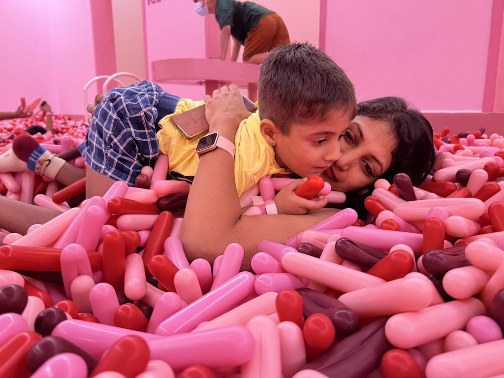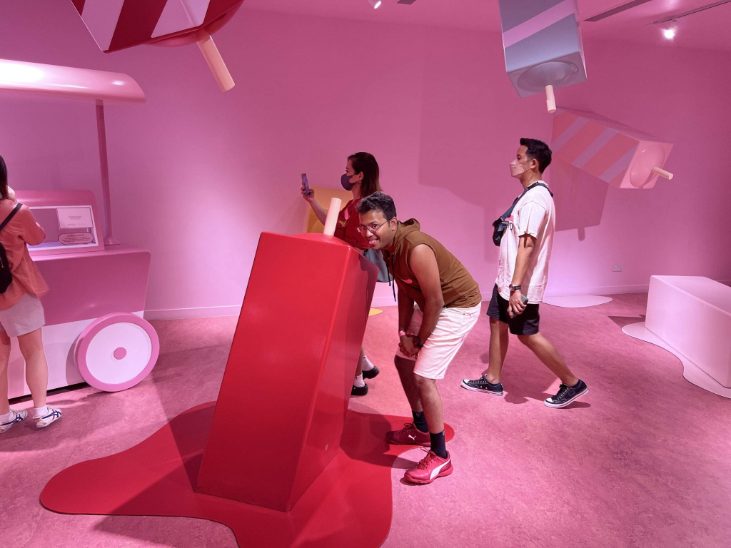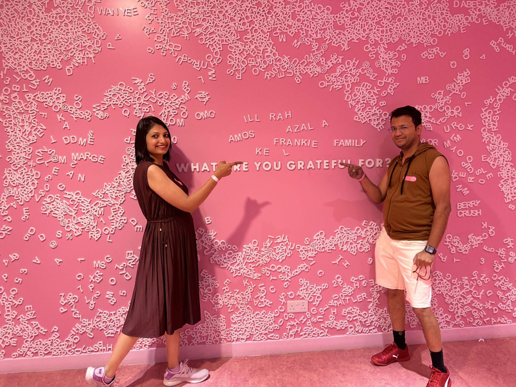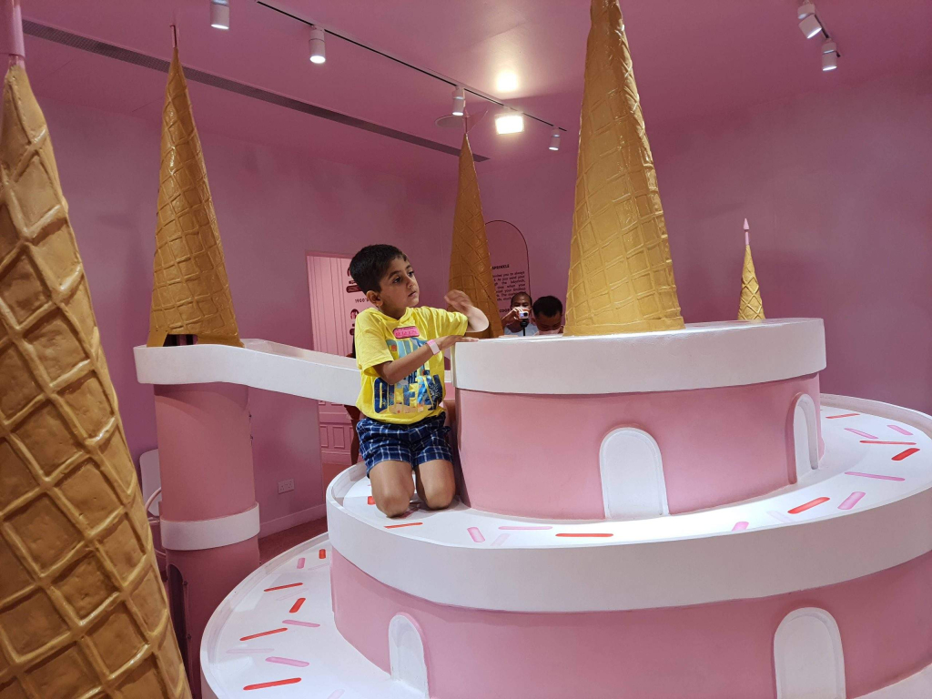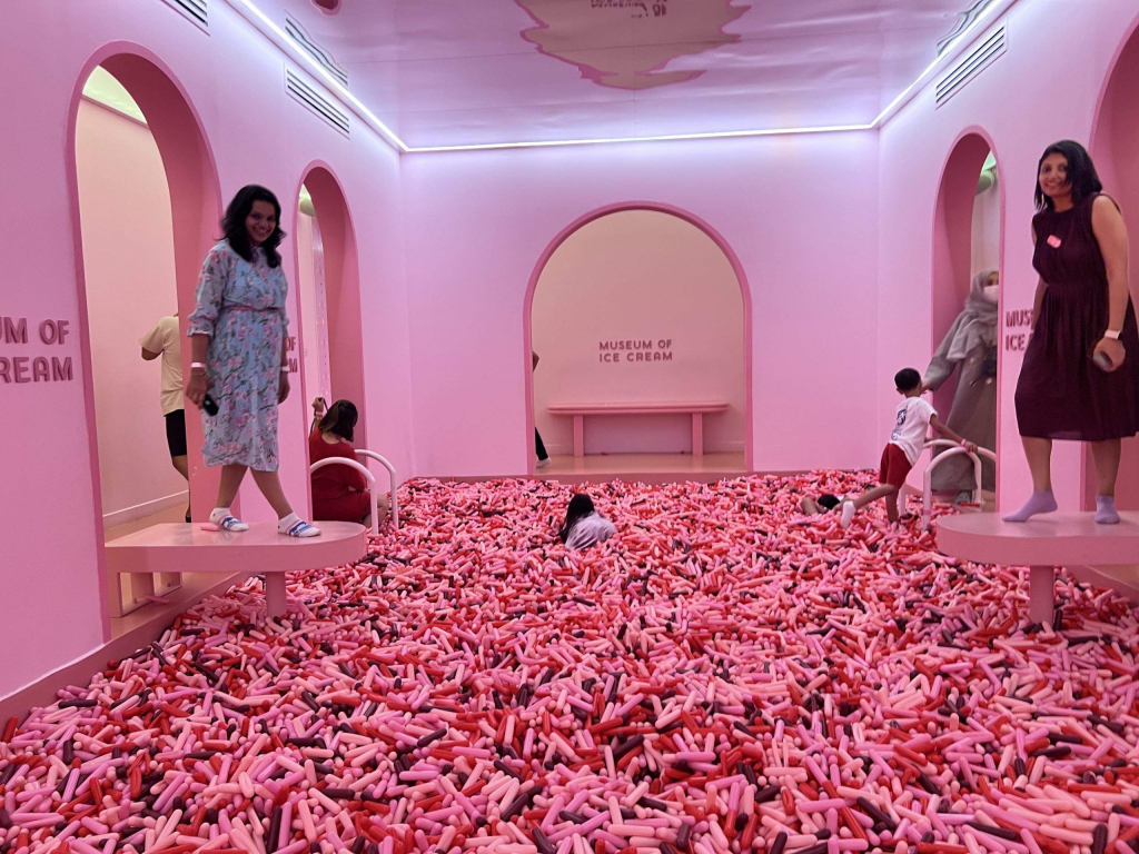 We started our journey with, “The Museum of Ice Cream”. Chocolate ice cream ki Duniya ke Sapne to bahut dekhe hai bachpan se, Aaj unko jee Bhi liya. Unlimited ice cream, a barbie dollhouse-like pink-painted museum, photo-friendly exhibits based around ice cream, an ice cream castle, ice cream tablet games, a squishy pink yellow bananas forest, neon ice cream maze, magnet letters wall, a dragon play area with swings, slides, and basketball, and the best of them the huge Sprinkle Pool, awoken the inner child within me. Although the ice creams were not that tasty, the place is worth visiting, especially if you are travelling with kids.
